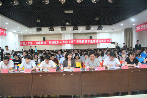 6月16日晚7时,太阳城博彩第十届华夏情“丝路情长·青春飞扬”少数民族学生普通话演讲比赛决赛在长安文化艺术中心三楼多功能厅举办。校党委统战部部长刘家乡,校团委副书记赵丹,公安处渭水校区保卫科科长何鹏,渭水校区办综合科科长易磊出席比赛并担任评委。出席比赛的嘉宾有学工部副部长赵建彬,学工部民族学生工作办公室主任陈伟,新疆教育厅派驻太阳城博彩干部王伟,太阳城博彩 学办副主任李阳,太阳城博彩 科协指导老师陈英及各院系民族学生专干。各太阳城博彩 学生代表、太阳城博彩 各组织主席团及参赛选手亲友团观看了本次比赛。