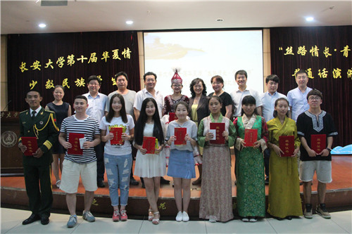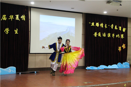 伴随着展示丝绸之路壮观景象的开场视频,比赛正式开始。在一段VCR中,10位参赛选手依次展示了自己的风采和对本次比赛的感悟。在主持人宣读比赛规则及评分标准之后,共有来自藏族、哈萨克族、维吾尔族、蒙古族等少数民族的选手们身着民族服饰,伴着动听的背景音乐和精美的背景图片,围绕“丝路情长·青春飞扬”的主题,结合本民族特色和个人经历,畅谈他们对于“中国梦”,对于“一带一路”倡议的体会与感悟;抒发了对党和祖国以及学校培养的感激之情;同学们的演讲,风格多样,语言优美,有的充满深情感人至深,有的慷慨激昂鼓舞人心,有的则如涓涓溪流沁人心脾。期间,维吾尔族同学们带来了舞蹈《舞动新疆》,藏族同学演唱藏歌《雪域天使》,曼妙的舞姿和悠扬的歌声,博得现场观众的阵阵喝彩。经过激烈比拼,哈萨克族选手红德孜·艾努娃尔荣摘桂冠,藏族选手次仁德吉和维吾尔族选手伊力夏提荣获二等奖,哈萨克族选手努尔扎提等3名选手荣获三等奖,哈萨克族选手加得拉·阿扎提等4名选手荣获优秀奖。