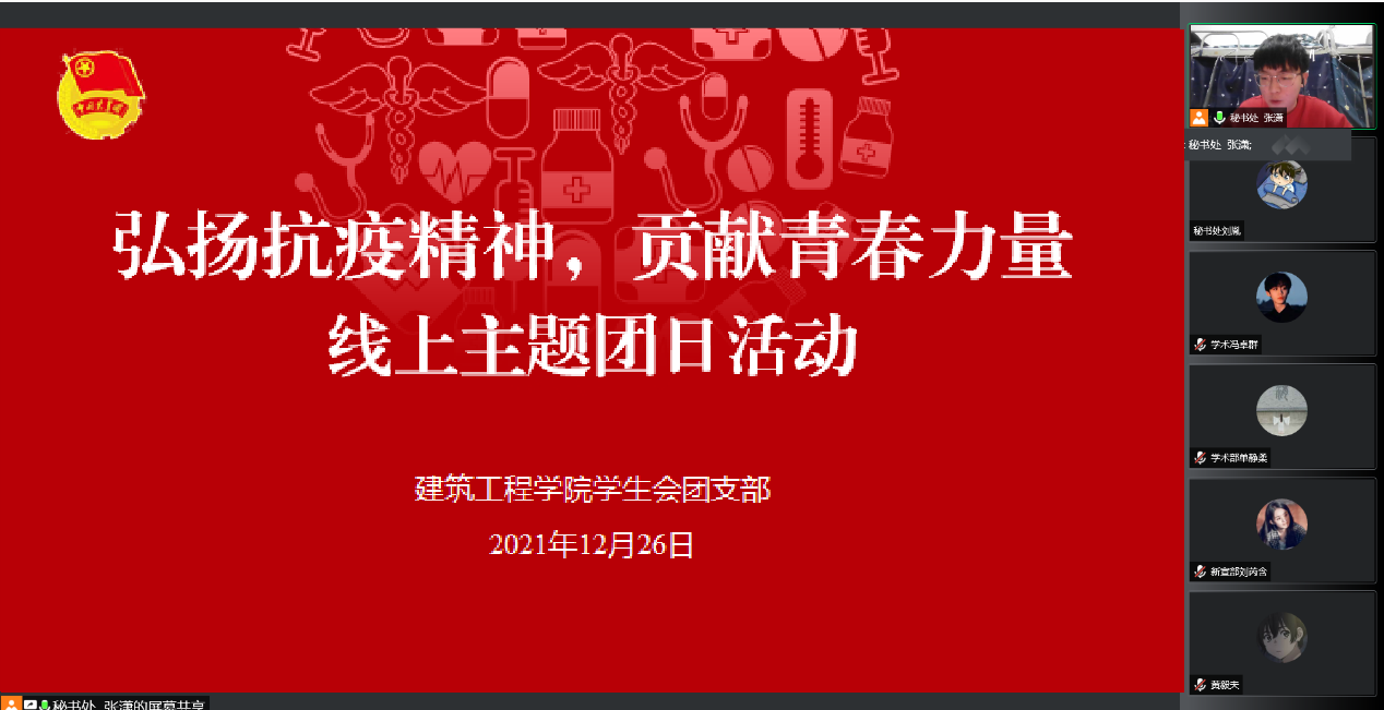 12月28日太阳城博彩 学生会团支部开展“弘扬抗疫精神,贡献青春力量”线上主题团日活动,学生会全体成员参与了本次活动。