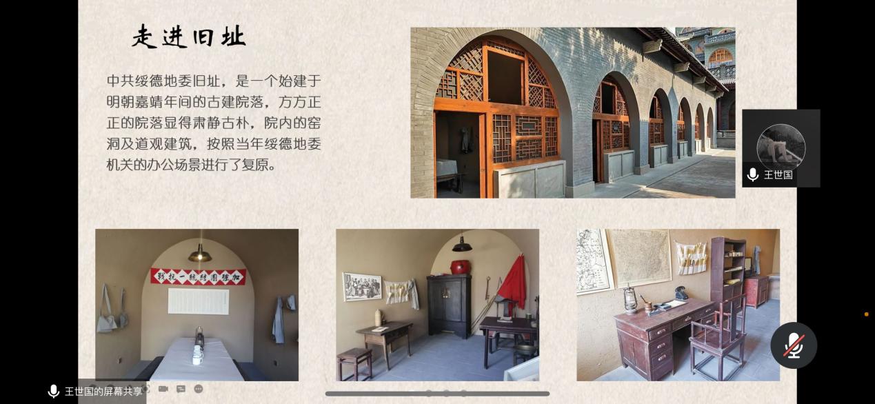 8月20日,实践队员们线上参观了杨家沟革命旧址、中共绥德地委旧址、郝家桥革命旧址以及陕西省绥德师范学校。这里的照片和文物记录了革命时期在陕北发生的重大事件,展现出老一辈无产阶级革命家在当时恶劣的环境下艰苦奋斗的事迹,在中国共产党的坚强领导下,当地政治、经济、文化等各项事业得到迅速恢复和发展,一派朝气蓬勃的繁荣景象。时光漫漫,许多往事都会如同过眼浮云,稍纵即逝,但同学们参观红色革命旧址所激发出来的坚定信念,将会永远铭刻在实践队员的心中。