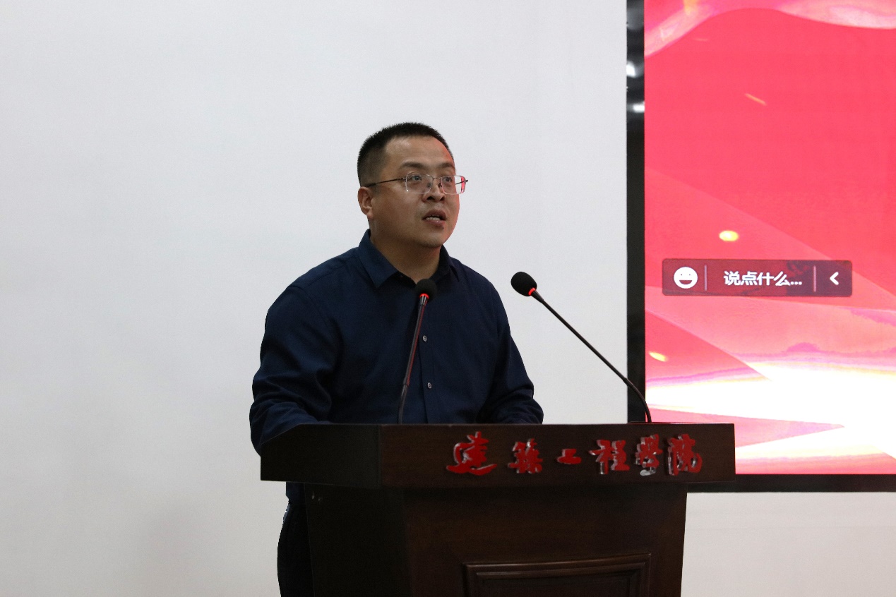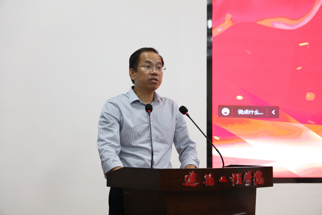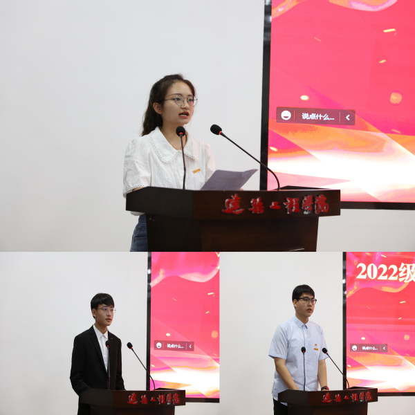 在校学生代表2021级土木水利专业硕士研究生谢慧同学、2022级本科生新生代表彭浩原、2022级研究生新生刘力嘉同学先后分别发言,表示在未来的学习生活中,要继承建工精神,用拼搏擦亮青春底色,用奋斗丈量青春。秉承“弘毅明德、笃学创新”的校训精神,拼搏奋斗,以新时代青年的担当和作为,开启人生新征程,逐梦前行、扬帆远航!