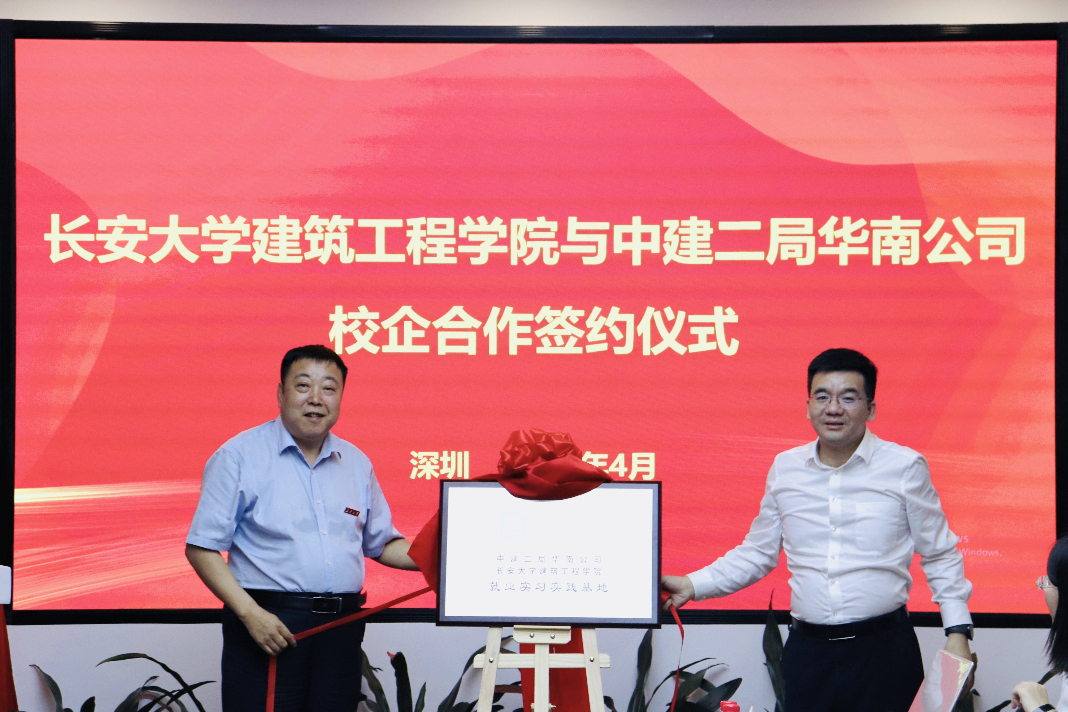 4月12日,太阳城博彩 一行到访中建二局华南公司。公司党委副书记、工会主席罗资奇对太阳城博彩 长期为公司输送优秀人才表示感谢,希望校企双方继续加强在人才培养、科学研究、学生实习等方面的合作交流。人力资源部经理郭建伟就人才需求情况和就业优惠政策等方面进行了说明。双方共同签订了校企合作意向协议,并为就业实习实践基地揭牌。中建二局华南公司深圳分公司领导、长安大学部分优秀校友参加座谈。