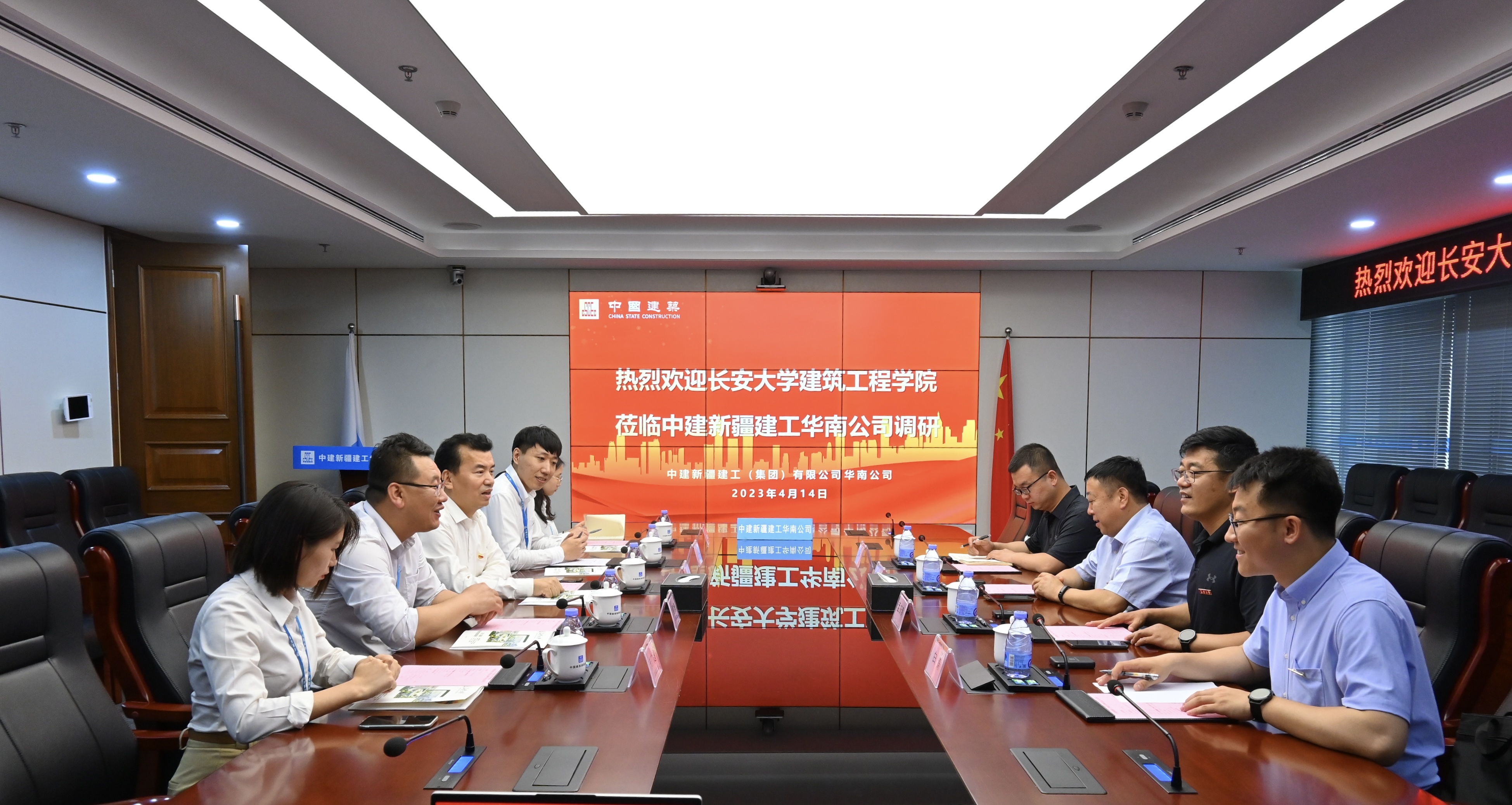 4月14日,太阳城博彩 一行赴中建新疆建工(集团)有限公司华南分公司开展座谈交流。公司党委书记、董事长、优秀校友胡杰会见了太阳城博彩 一行。座谈交流中,公司党委副书记、纪委书记、工会主席王西朝对太阳城博彩毕业生给予了高度肯定,交流了学生就业情况,表示愿意积极与学校合作开展学生实习、就业指导、生涯规划等工作。助理经理、优秀校友刘鹏博结合个人发展经历,在校企合作等方面提出了建议。人力资源部经理张正汇报了公司人才政策、学校毕业生发展等情况。