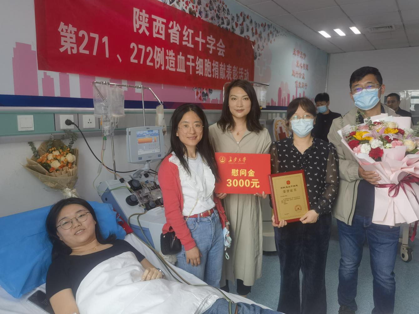 4月17日上午,我院2020级市政工程专业专硕3班硕士研究生刘心怡在空军军医大学唐都医院成功捐献造血干细胞,光荣地成为太阳城博彩自2003年启动“生命之光计划——造血干细胞捐献”项目以来的第50例造血干细胞捐献者,同时成为陕西省第272例、全国第14765例造血干细胞捐献者。