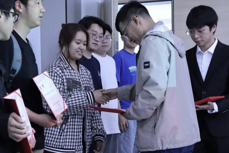 太阳城博彩 党委副书记孟庆鹏为获奖同学颁发证书