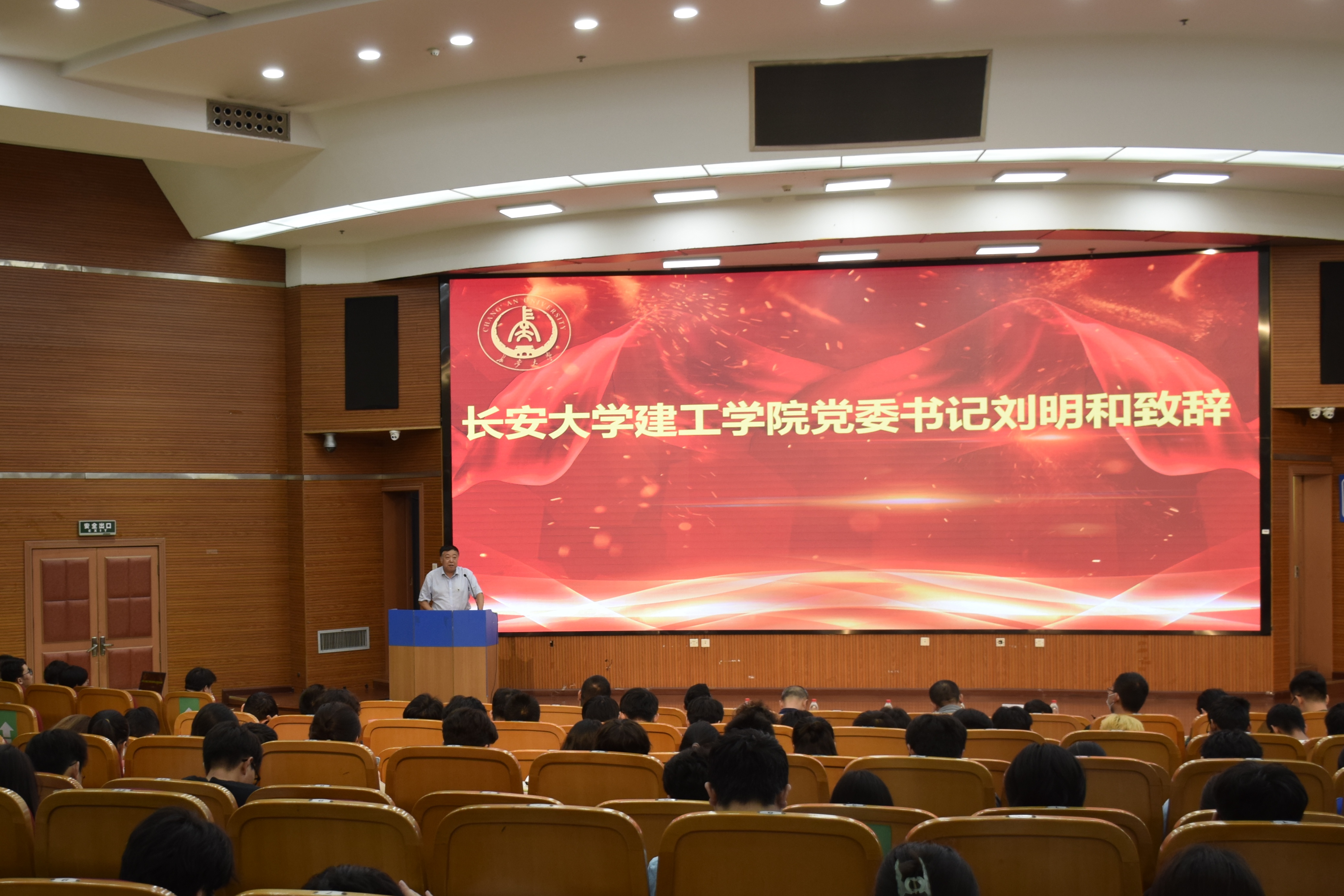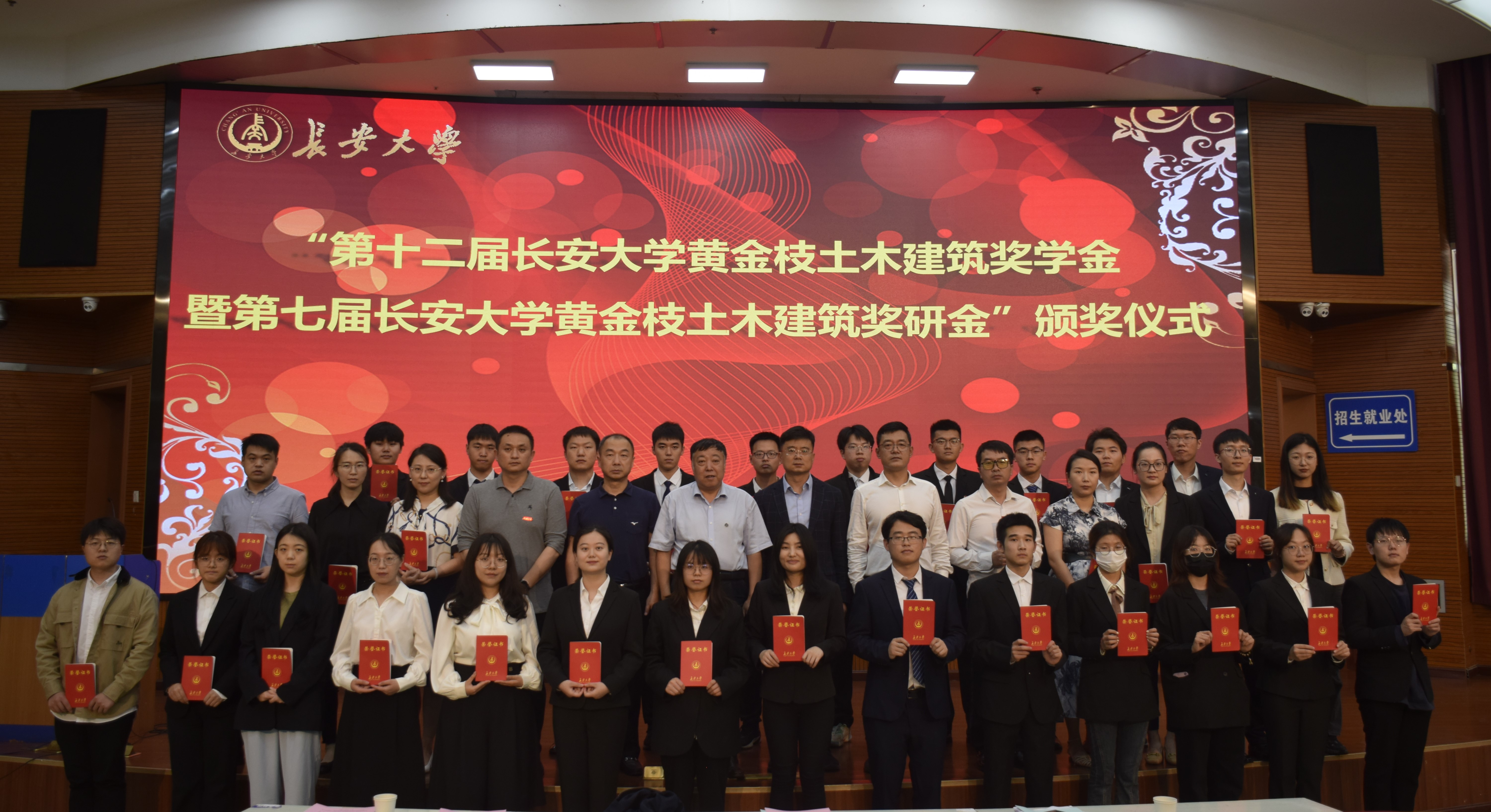 5月30日中午,第十二届“长安大学黄金枝土木建筑奖学金”暨第七届“长安大学黄金枝土木建筑奖研金”颁奖仪式在长安大学北校区图书馆西侧裙楼报告厅举行。长安大学社会合作处副处长邱旭辉、学生资助中心主任欧阳韬、太阳城博彩 党委书记刘明和、党委副书记孟庆鹏、建筑太阳城博彩 党委副书记刘鹏出席此次颁奖仪式,太阳城博彩 和建筑太阳城博彩 辅导员、全体获奖师生和学生代表共200余人参加仪式。颁奖仪式由孟庆鹏主持。