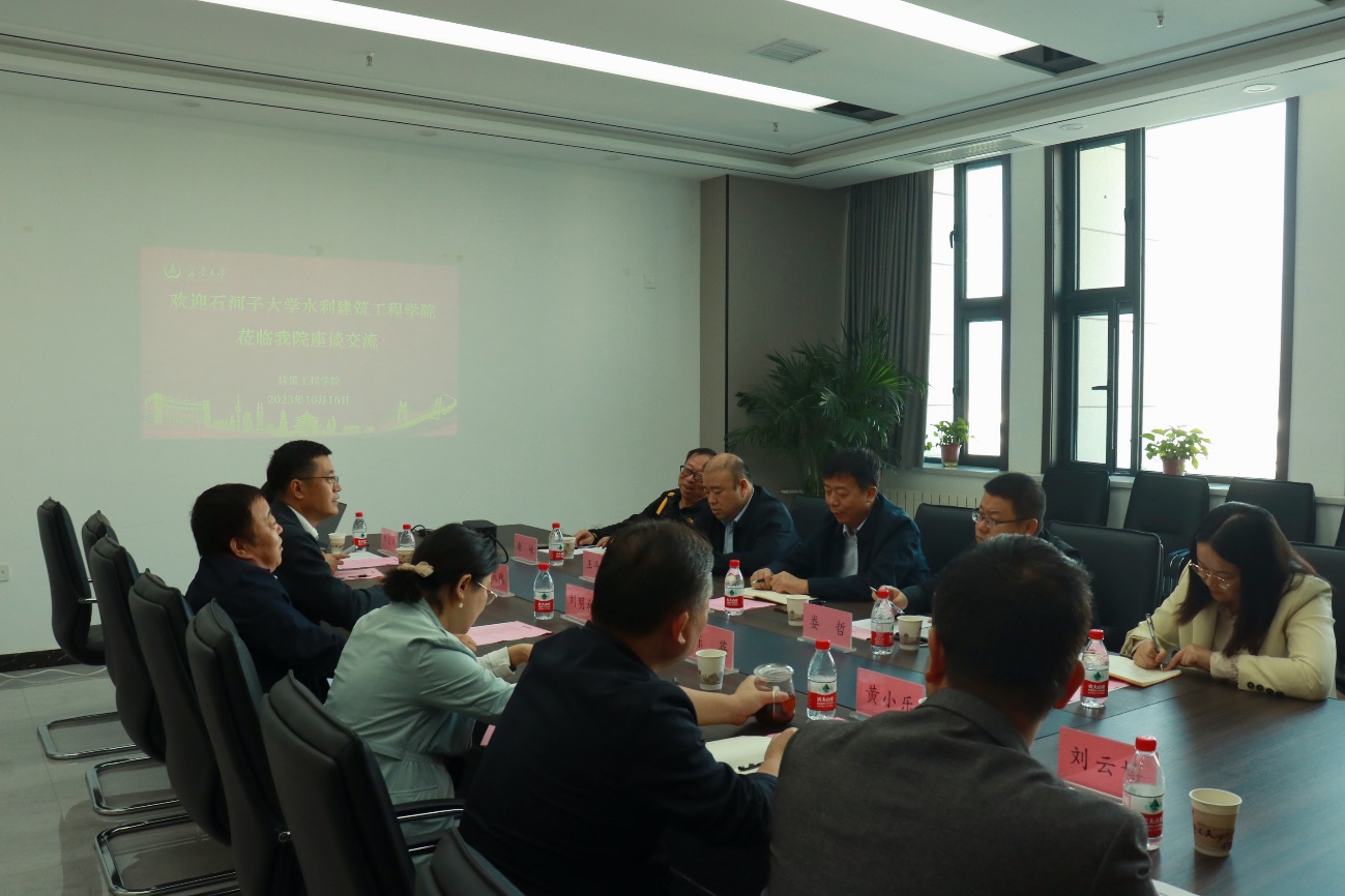 10月16日,石河子大学水利太阳城博彩 党委书记汤骅、党委副书记娄哲一行5人来院交流,院党委书记刘明和、党委副书记孟庆鹏及相关科级干部参加交流。