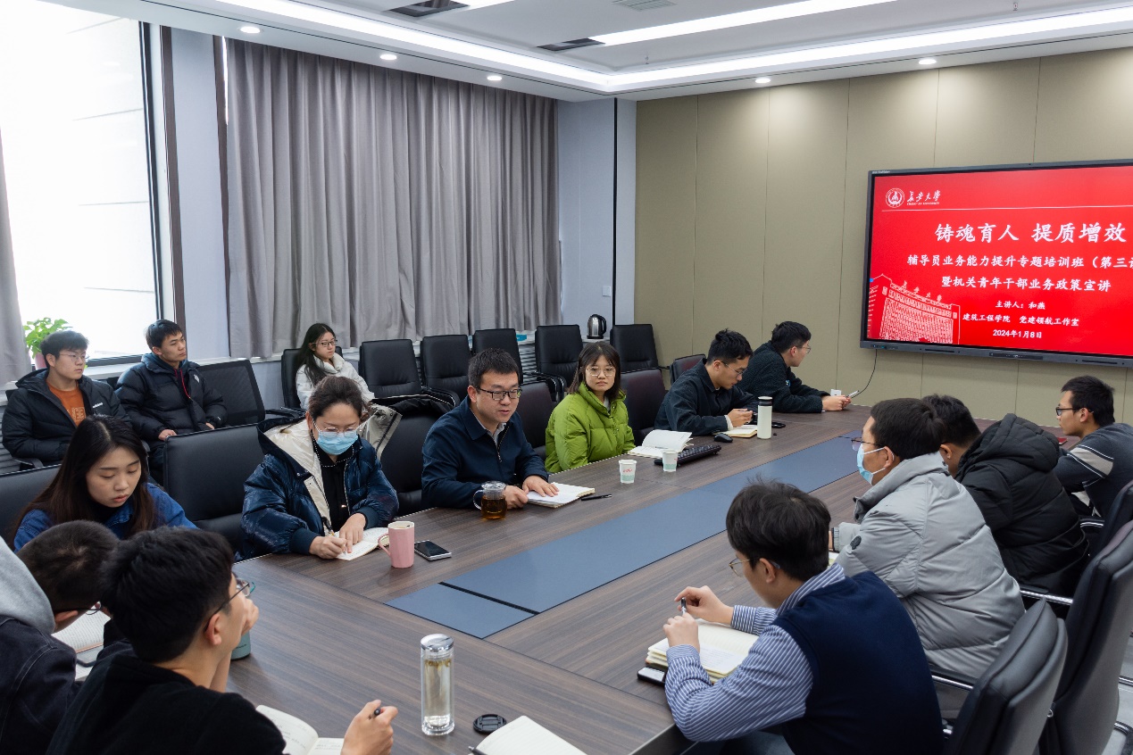 1月8日下午,太阳城博彩 在北校区致远大厦第二会议室举办“铸魂育人,提质增效”辅导员业务能力提升专题培训班第三讲。培训由校党委宣传部校报编辑部和燕老师担任主讲,学生工作办公室主任刘云博主持。