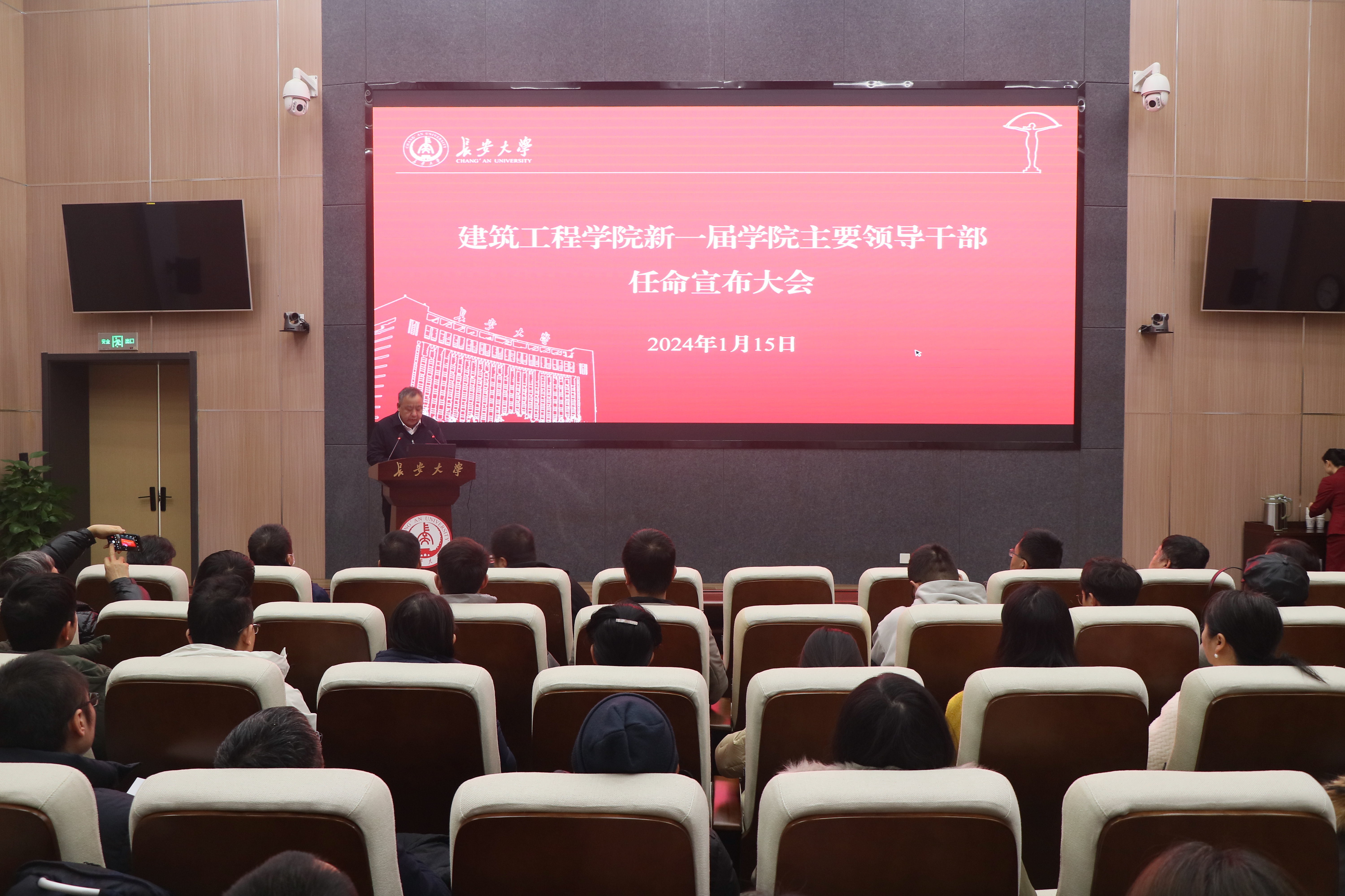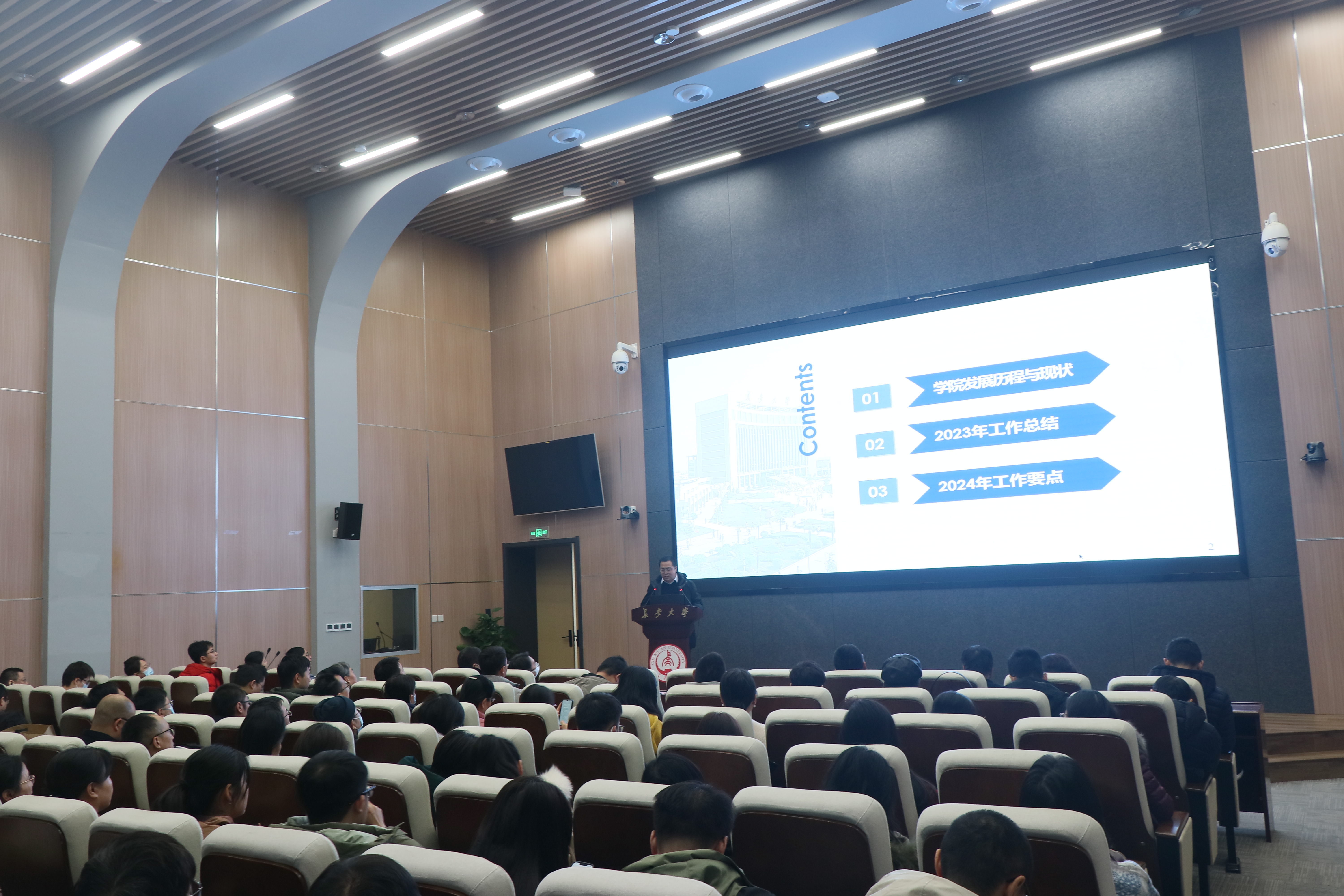 新一届太阳城博彩 主要领导干部任命宣布结束后,院长邢国华从太阳城博彩 发展历程与现状、2023年工作总结和2024年工作要点三个方面进行工作汇报。党委书记吴涛简要介绍土木行业、学科和专业发展形势,就如何应变局、开新局提出思考和解析,并对太阳城博彩 寒假工作作简要安排。