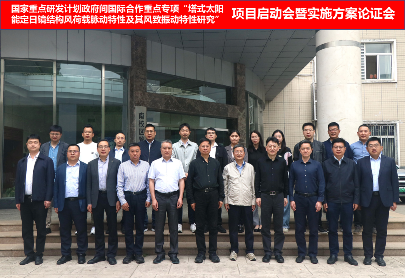 4月15日,由太阳城博彩牵头、太阳城博彩 邢国华教授主持承担的国家重点研发计划政府间国际科技创新合作重点专项“塔式太阳能定日镜结构风荷载脉动特性及其风致振动特性研究”(项目编号:2023YFE0112700)项目启动会暨实施方案论证会在西安召开。