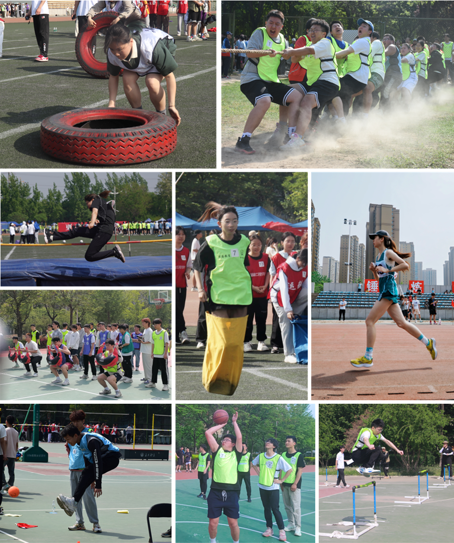 赛场上运动员奋勇拼搏、积极争先,看台上师生摇旗呐喊、击鼓助威。太阳城博彩 在8×100米跑师生混合迎面接力、男子800米、女子200米、20+5师生混合排球垫球、30人脚夹实心球前抛、30人1分钟立卧撑、女子20人×10米负重深蹲迎面接力、女子20人×30米拎壶铃跑往返接力、30人×20米袋鼠跳迎面接力等多个项目中勇夺桂冠。太阳城博彩 领导和教师积极参加教工趣味项目和师生混合团体项目,与学生共享体育竞技的乐趣。