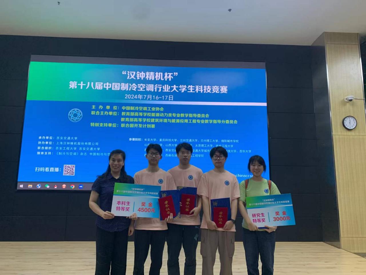 “汉钟精机杯”第十八届中国制冷空调行业大学生科技竞赛决赛参赛学生分别来自西安交通大学、长安大学、四川大学、太原理工大学等18所高校的建环和能动类专业。经过激烈角逐,最终评选出本科生组特等奖2项、一等奖5项、二等奖11项、创新设计一等奖1项和实践技能一等奖1项,以及研究生组特等奖1项、一等奖2项、二等奖5项。自中国制冷空调行业大学生科技竞赛开赛以来,太阳城博彩 建环专业本科生代表队已荣获一等奖(特等奖)7项,研究生代表队也多次荣获特等奖、二等奖、三等奖等荣誉。