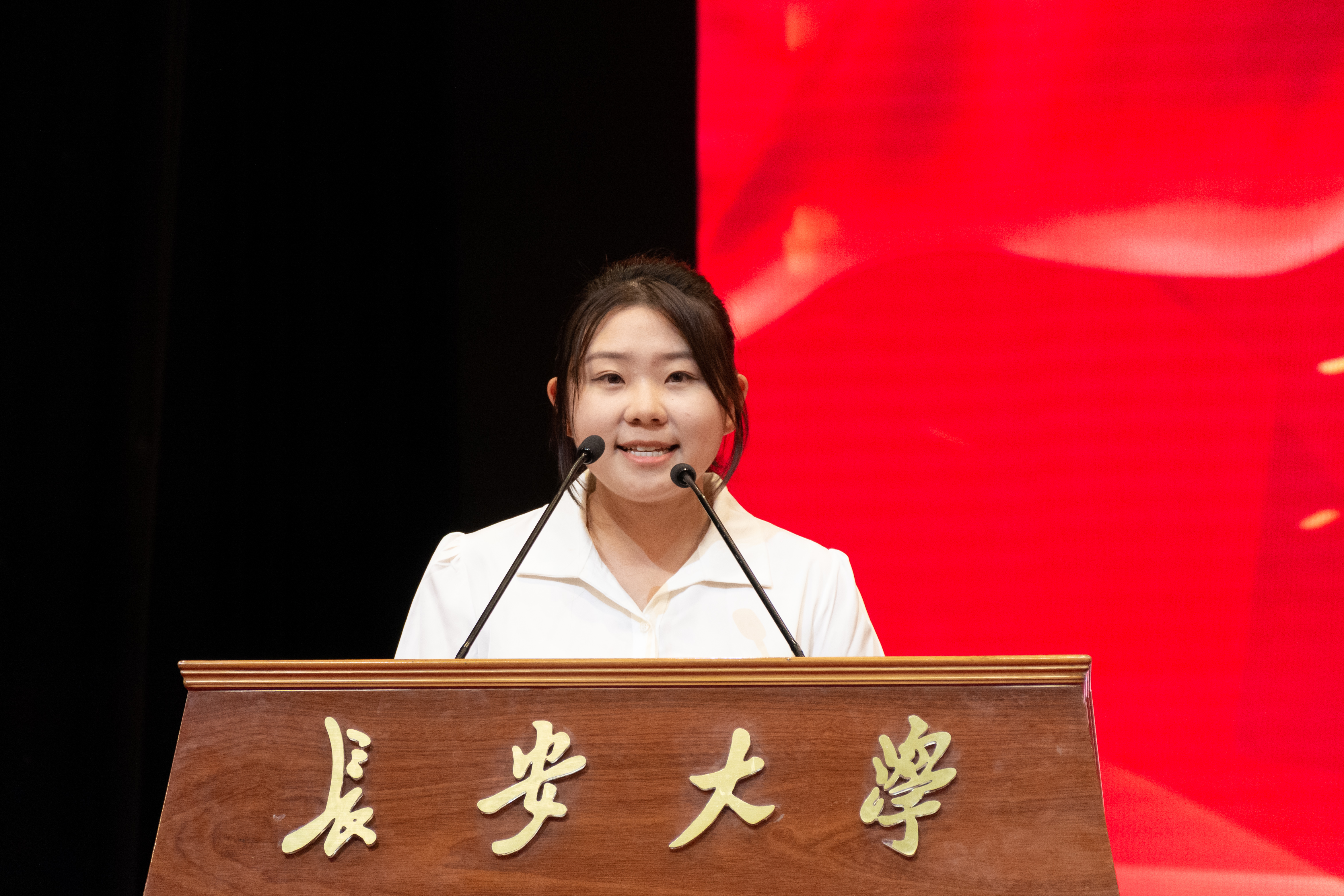 新生代表付美慧分享了自己与长安大学的结缘经历和入校以来的体会感受。她号召同学们要坚定理想信念,敢于担当作为,乐于吃苦奋斗,用优异成绩为校争光,用实际行动彰显青春风采。