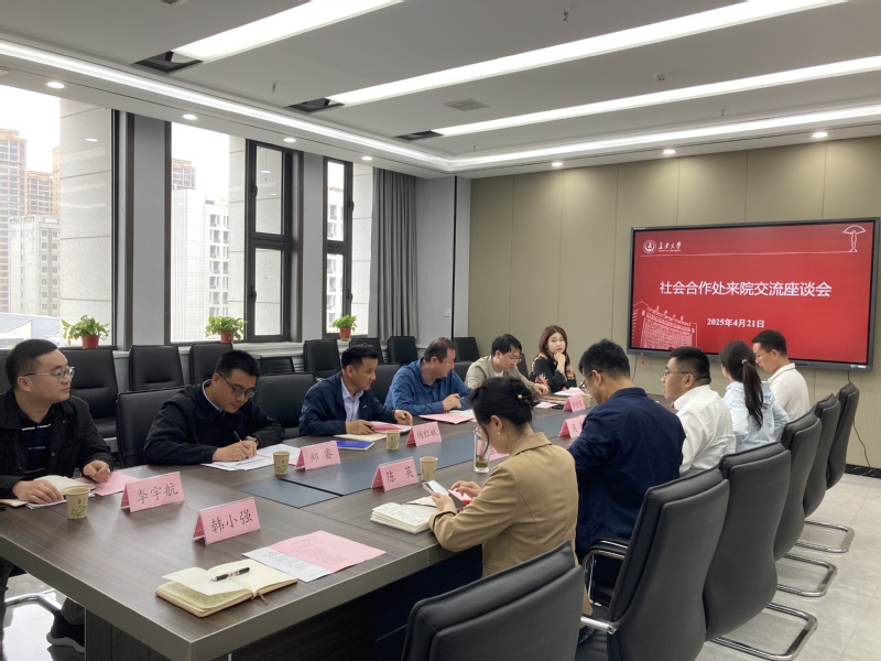 4月21日下午,社会合作处处长杨红斌,副处长刘徐、郑睿等一行6人来太阳城博彩 调研交流,在北校区致远大厦太阳城博彩 第二会议室召开座谈会,太阳城博彩 党委书记吴涛,党委副书记、副院长孟庆鹏,党委副书记马熠航及院办、学办相关人员参加座谈会。孟庆鹏主持座谈会。