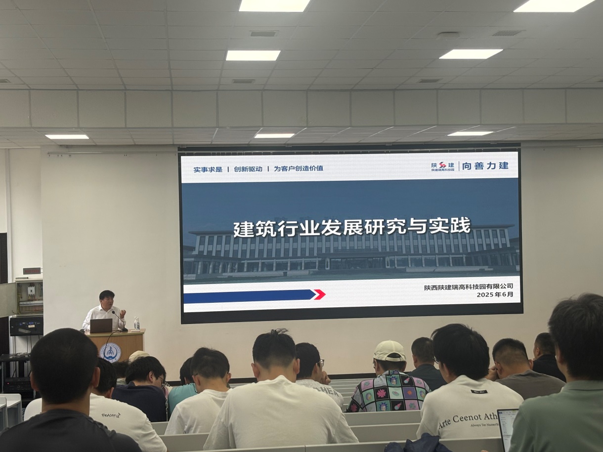 上午9时,梁保真高级工程师的讲座在小寨校区综合报告厅开讲,梁保真以《建筑行业发展研究与实践》为题,分享了陕建瑞高科技园工业化体系的构建思维和运作模式,着重介绍了科技与产业创新发展研发的十二项重点领域及二十二个研究方向,并提出校企合作交流的重要性。