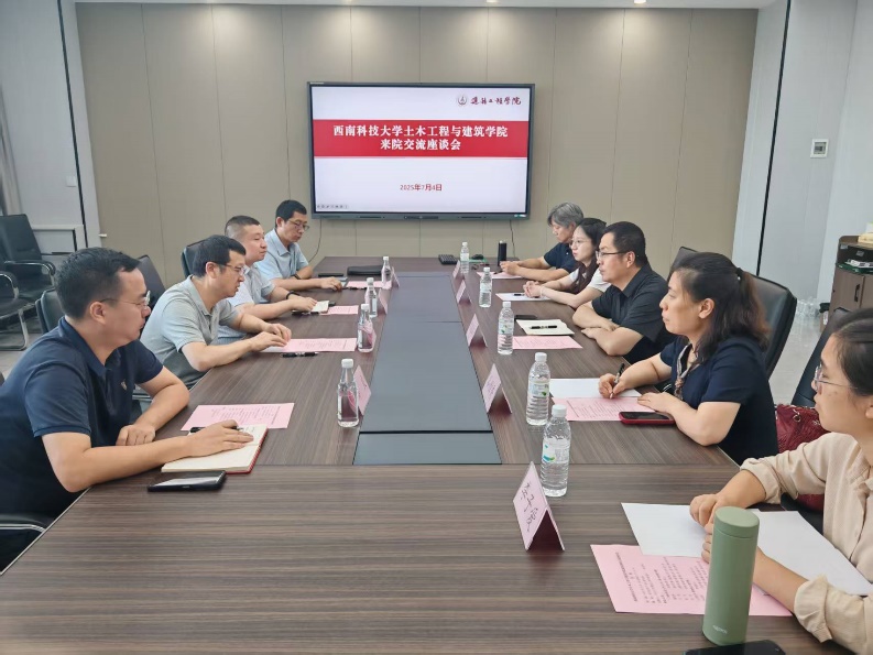 7月4日下午,西南科技大学土木工程与建筑太阳城博彩 党委书记陶俊林一行4人来太阳城博彩 调研交流。院长邢国华主持召开了座谈会,人工环境与能源工程系主任谷雅秀、副主任檀姊静、市政与暖通实验中心副主任赵凡、建环与市政联合党支部组织委员李子爱参加了座谈会。
