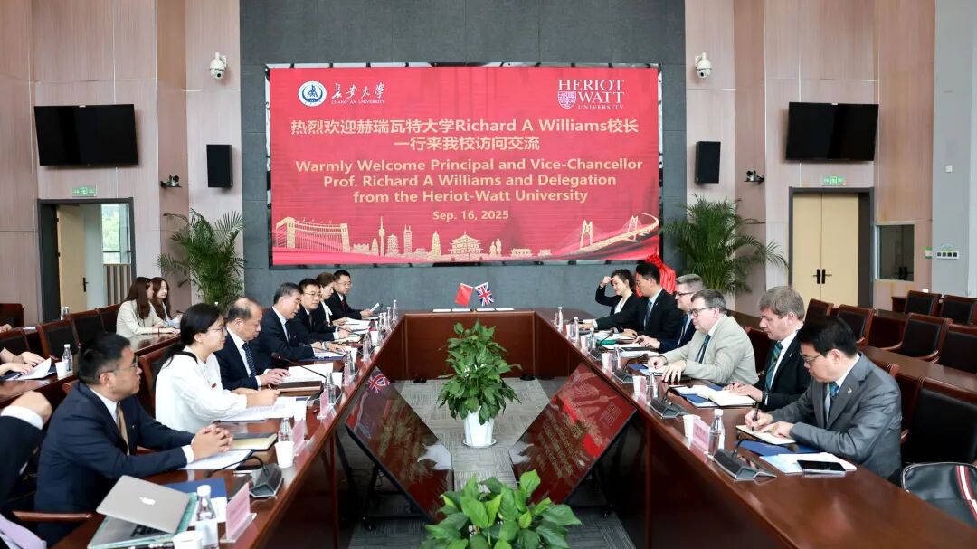 李树涛校长代表学校对赫瑞-瓦特大学代表团表示欢迎,充分肯定了两校长期以来在国际化合作中取得的成果,并期待进一步拓展人才培养与学科共建的深度与广度。范文副校长主持会谈并就加强中英教育合作发表意见。