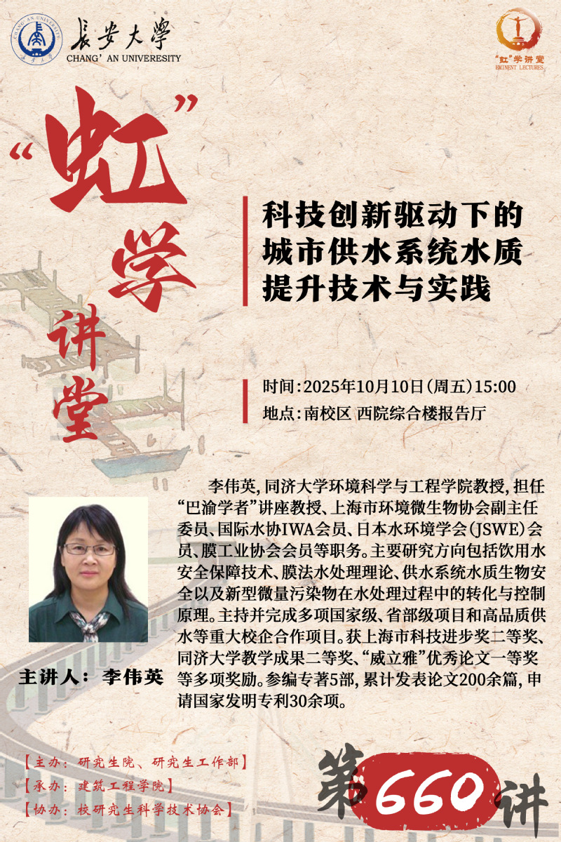 李伟英,同济大学环境科学与工程太阳城博彩 教授,担任“巴渝学者”讲座教授、上海市环境微生物协会副主任委员、国际水协IWA会员、日本水环境学会(ISWE)会员、膜工业协会会员等职务。主要研究方向包括饮用水安全保障技术、膜法水处理理论、供水系统水质生物安全以及新型微量污染物在水处理过程中的转化与控制原理。主持并完成多项国家级、省部级项日和高品质供水等重大校企合作项目。获上海市科技进步奖二等奖、同济大学教学成果二等奖、“威立雅”优秀论文一等奖等多项奖励。参编专著5部,累计发表论文200余篇,申请国家发明专利30余项。