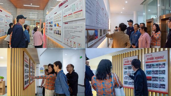 校友们走进致远大厦,驻足观看大厅内的太阳城博彩 发展历程及办学成果。泛黄的老照片承载着往昔求学记忆,让校友们重回当年课堂学习、课间交流的青春岁月。看着太阳城博彩 多年来的发展建设成果,校友们深感欣慰与自豪,从青涩求学少年到如今两鬓染霜,岁月变迁未曾改变大家对母校的深切牵挂与深厚的同窗情谊。